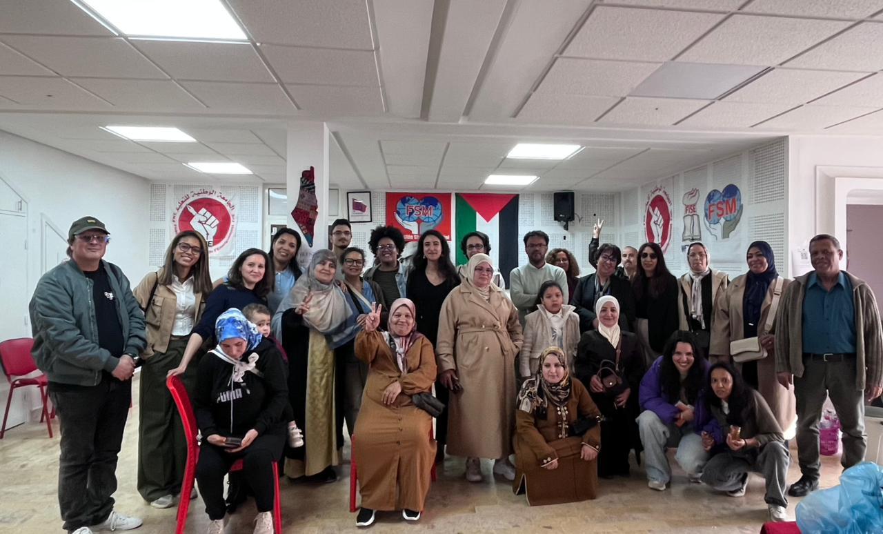 وشكلت هذه الجلسة فضاءا لاستحضار تجارب النضال ضد الحروب الامبريالية والاستعمار وسياسة التطبيع التي تعرفها بلدان المنطقة، بحيث نقلت مداخلة الناشطة النسوية الفلسطينية هديل شطارة، وهي أسيرة محررة، الأوضاع المأساوية التي تقاسيها نساء الشعب الفلسطيني والتي يكشفها ارتفاع عدد النساء اللواتي فقدن حيواتهن في ظرف عامين من حرب الإبادة الصهيونية، وكما أوردت هديل فعددهن بلغ أثني عشر ألف وخمسمائة امرأة في قطاع غزة، كم تحدثت عن عشرات آلاف النساء مهجرات يتواجدن في خيام النزوح. وأوضحت أن الاستعمار لا يتجسد فقط في القتل والتهجير وعمليات النزوح الاجبارية، بل كذلك يتمثل في تحطيم البنى الاقتصادية والاجتماعية، ويزداد في مثل هذه الأوضاع العنف الجندري تجاه النساء، وأشارت إلى دور السلطة الفلسطينية في تشديد الخناق على الأهالي بعدم صرف الرواتب، وتنتج بذلك أشكال جديدة من العنف الاجتماعي والاقتصادي الممارس خاصة على النساء الفلسطينيات.