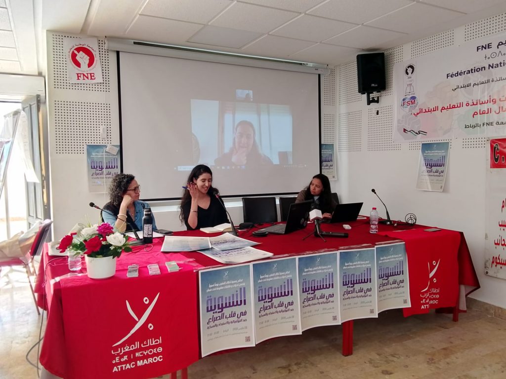 نظّمت جمعية أطاك المغرب يوم 28 مارس 2026 بالرباط يوماً نسويا لتبادل النقاش والتجارب بعنوان: النسوية في قلب النضال ضد النيوليبرالية والاستبداد والعسكرة.