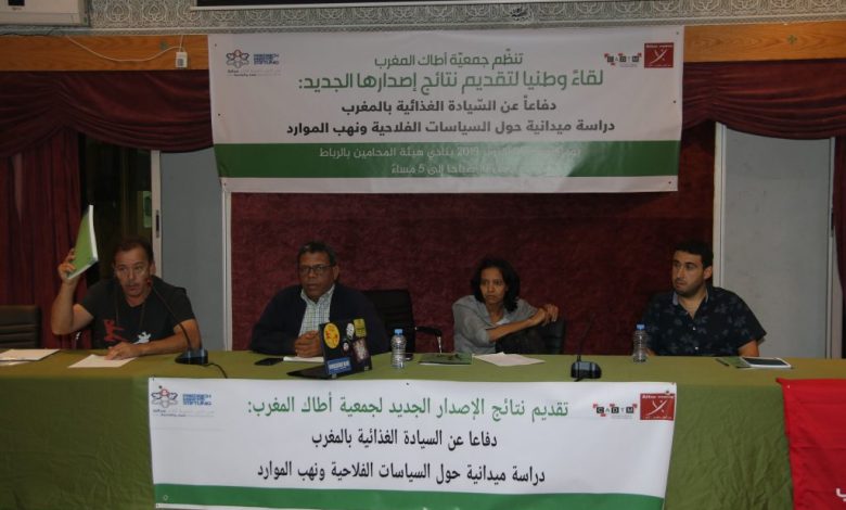 أصدرت جمعية اطاك المغرب، عضو الشبكة الدولية للجنة من أجل الغاء الديون غير الشرعية دراسة بعنوان، دفاعا عن السيادة الغذائية بالمغرب، دراسة ميدانية حول السياسة الفلاحية ونهب الموارد، وتدافع جمعية اطاك المغرب من خلال هذه الدراسة عن مفهوم السيادة الغذائية، الذي تتبناه شبكات نضال عالمية أخرى كحركة نهج المزارعين الصغار العالمية. وطورت هذه الحركة هذا المفهوم لتطرحه ضمن النضال العام ضد أنشطة النظام الرأسمالي المدمر للحياة على كوكب الأرض. ويعد تدمير الغذاء ومصادرة الأراضي وخوصصتها، وتدمير البيئة المحلية للشعوب إحدى الغارات التي يشنها الحكام والمؤسسات المالية الدولية لفرض هيمنة نموذج فلاحي صناعي تجاري تصديري. إننا في جمعية اطاك المغرب ننطلق من مفهوم السيادة الغذائية، والذي يعنى سيادة الشعوب على مصيرها الغذائي، وحقها الكامل في تقرير سياساتها الفلاحية، وإعطاء الأولوية لإنتاج زراعي محلي يستجيب للحاجيات الغذائية المباشرة ويحترم البيئة. وتعتبر السيادة الغذائية استراتيجية للنضال من أجل إصلاح زراعي يضمن حق امتلاك المزارعين والمزارعات الصغار لأراضيهم-هن ومصادر المياه، والحفاظ على استعمال البذور التقليدية وحمايتها من سطوة الشركات التجارية المتعددة الجنسية. ولا يشمل هذا المفهوم فقط الدفاع عن نمط انتاج زراعي واستهلاكي محلي، بل يتعداه إلى إقامة علاقات أخرى تحترم الطبيعة، وخالية من أشكال الهيمنة والسلب، التي تطبع أنشطة المجتمع الرأسمالي. إن بديل السيادة الغذائية ينبني كذلك على المساواة بين الرجال والنساء في امتلاك الأرض وتقاسم خيراتها بشكل جماعي ومستدام.