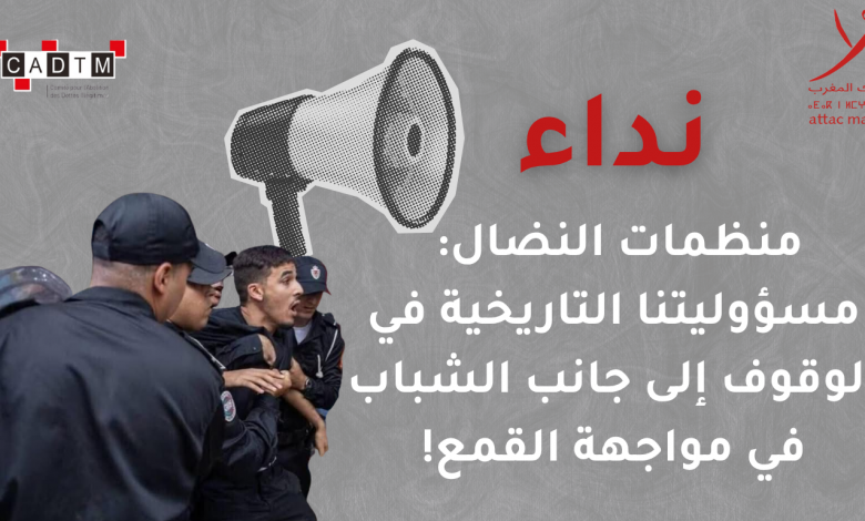 نداء منظمات النضال: مسؤوليتنا التاريخية في الوقوف إلى جانب الشباب في مواجهة القمع! نحن منظمات النضال المناصرة لحقوق الشعب المغربي…