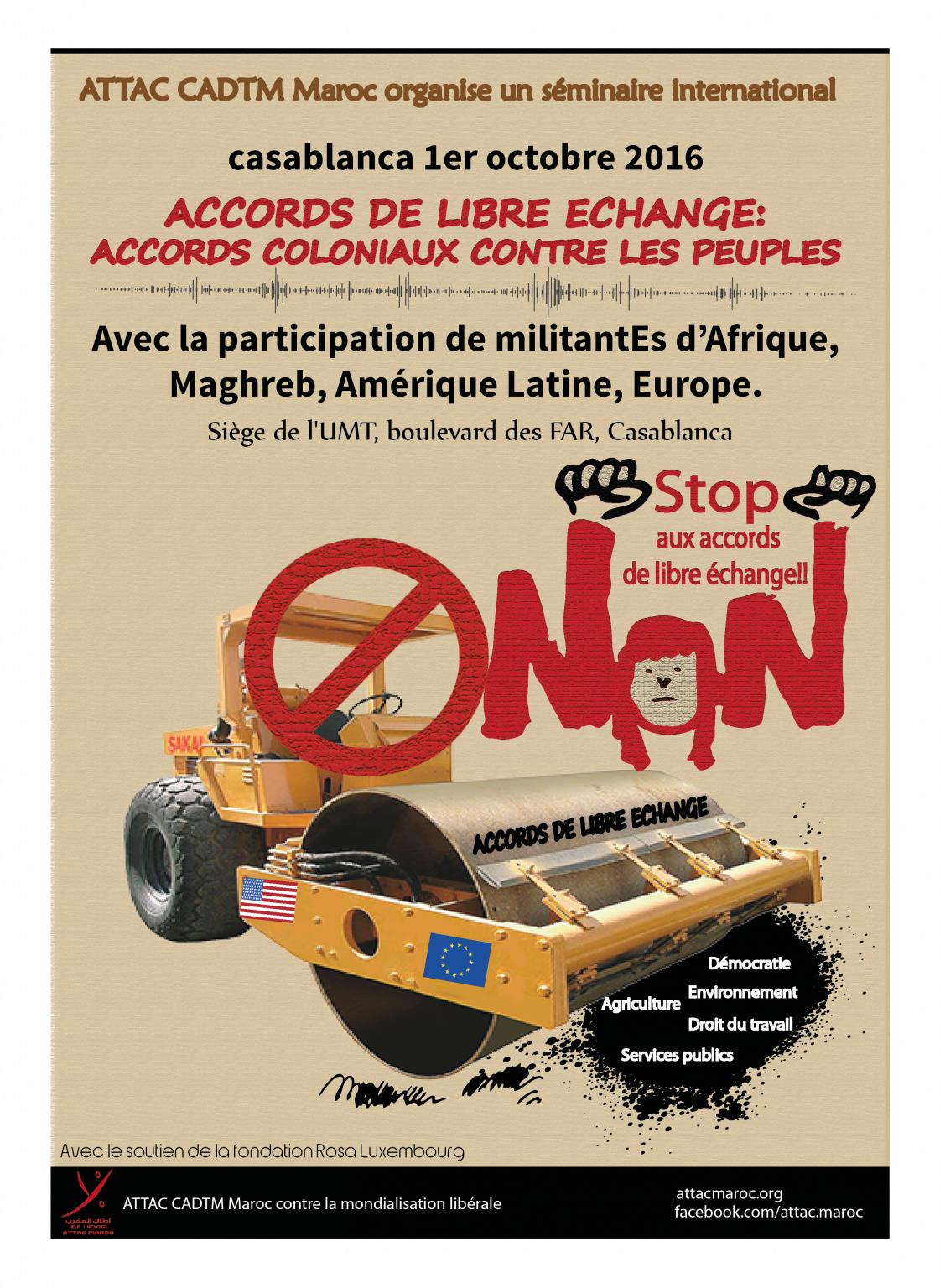 ATTAC CADTM MAROC organise un séminaire sur les accords de libre échange au Maroc le samedi 01 octobre 2016 à la ville de Casablanca au Maroc