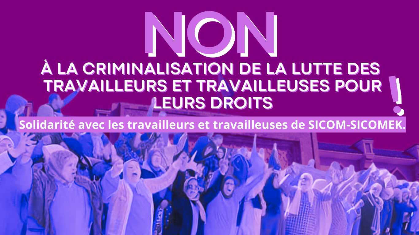 L’association Attac Maroc réaffirme son soutien inconditionnel à leur lutte pour la satisfaction de leurs revendications légitimes. Elle exige l’arrêt immédiat du harcèlement judiciaire dont ils et elles sont victimes. Attac Maroc se tient aux côtés des ouvrières et ouvriers de Sicom-Sicomek dans toutes les formes de mobilisation qu’ils décideront, et appelle l’ensemble des organisations progressistes, syndicales et de défense des droits humains à se joindre à ce combat juste et nécessaire.