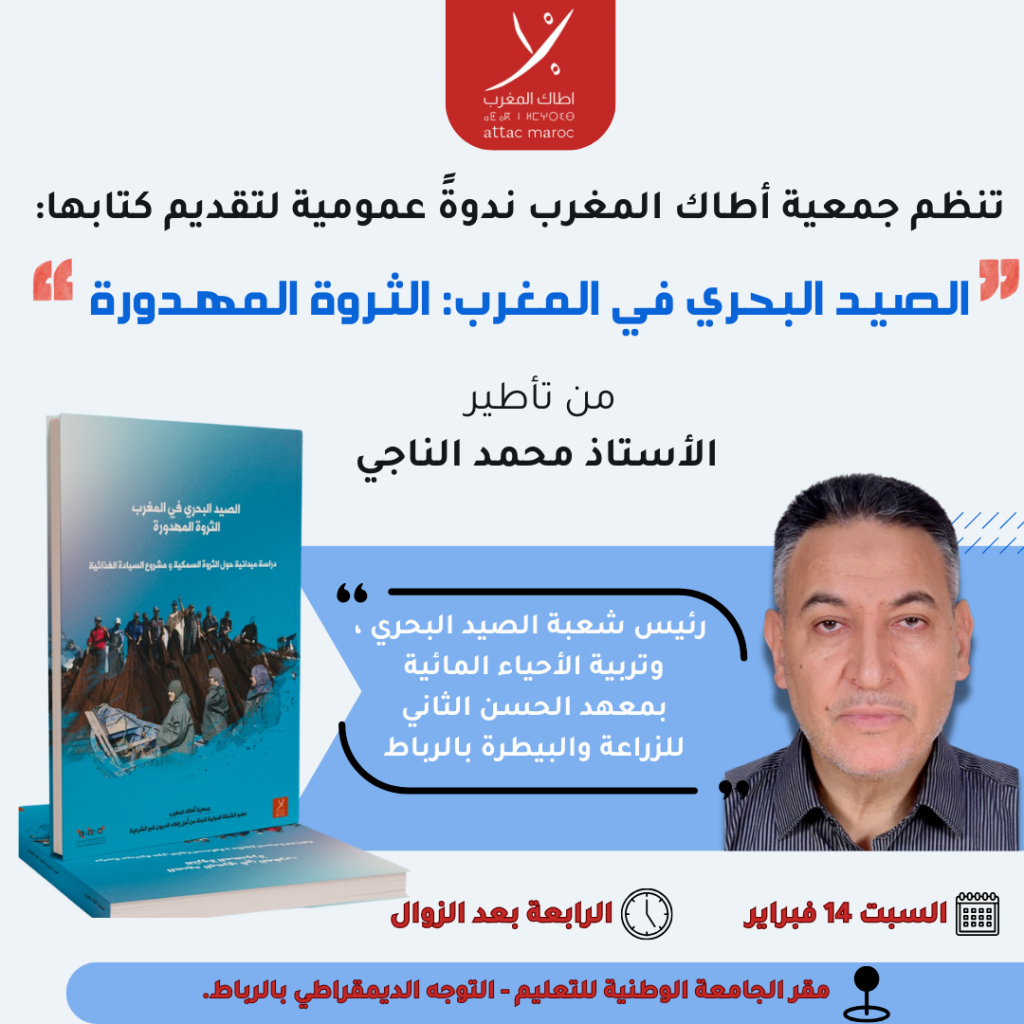 ندوة عمومية لتقديم كتاب حول نهب الثروات البحرية بالمغرب من تأطير الأستاذ محمد الناجي